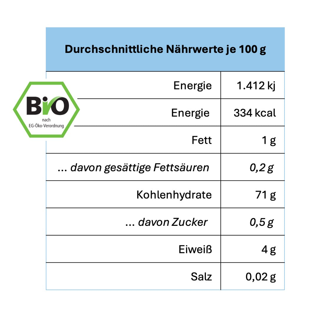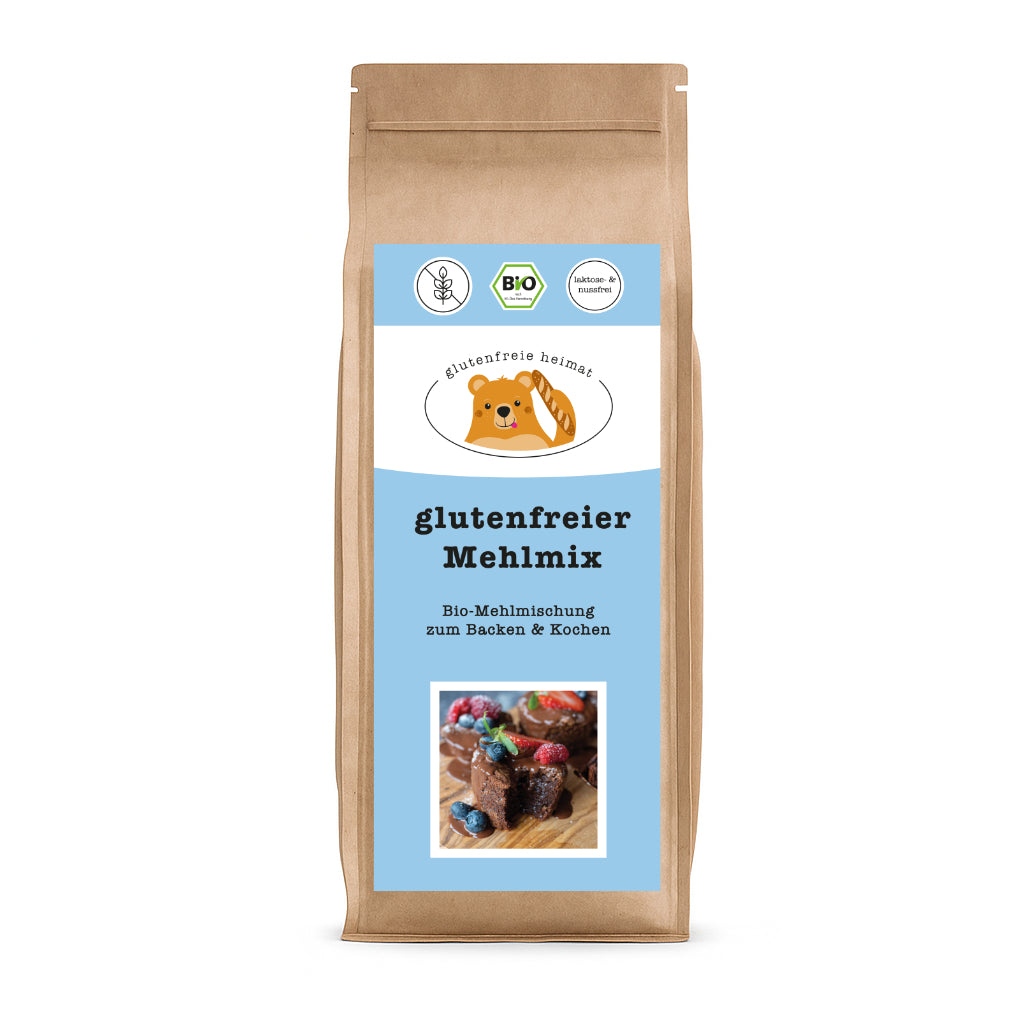 Unser glutenfreier Bio-Mehlmix ist dein Allrounder für alles, was du gerne selbst zubereitest – egal ob süß oder salzig. Du kannst ihn 1:1 wie Weizenmehl ersetzen und so deine Lieblingsrezepte ganz einfach glutenfrei backen oder kochen. Ob Kuchen, Muffins, Brot oder herzhafte Gerichte – dieser Mix macht alles mit. (Tipp: Super lecker auch mit Reismilch & Kokosblütenzucker – für bewusstes Backen ohne Verzicht.)