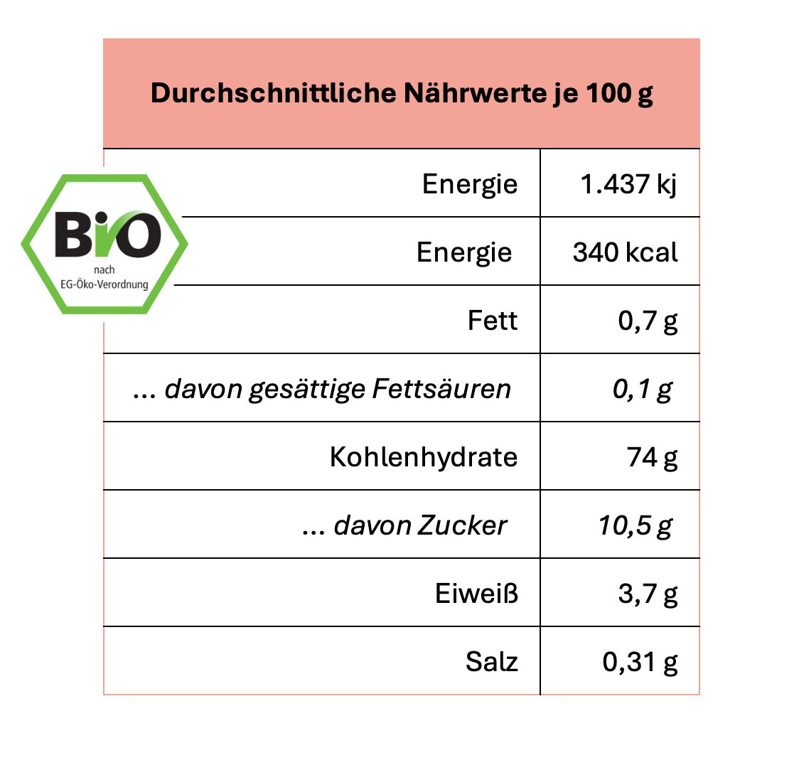+100 % glutenfrei, Bio, vegan möglich, laktosefrei & nussfrei.